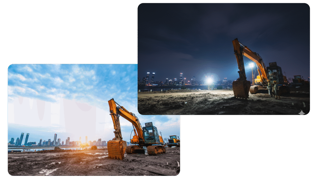 Generate an image of the same scene as [Image1], but showing how it looks at night version. Keep the environment and style consistent, but add natural changes over time such as light, weather, people and so on. Photorealistic, seamless continuity.